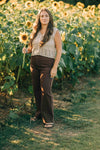 The Alyssa vest is the perfect transition piece! Made of 100% cotton and featuring the most beautiful crochet pattern, this top will go with so many things you already have! It can be worn as a top or layered with a dress or long-sleeve shirt. Shown here with the Leah jeans.