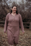 The Fawn sweater dress is a classic layering piece for these colder months. Made with a blend of cotton and acrylic, it is breathable, soft, and durable. The silhouette is flattering but oh so comfy!