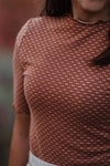 The Raleigh top is the perfect fall layering top. The beautiful rust color paired with the polka dot texture makes the perfect combination. The mock neck is adorable under overalls, as well as paired with a skirt like the Alexa. And for a more layered look, you can even pair it with a cardigan over the top :) Shown here with the Alexa skirt.